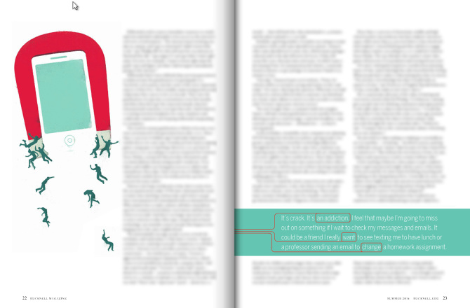 J'ai illustré plusieurs articles pour l'édition d'été de Bucknell Magazine (Université de Pennsylvanie).