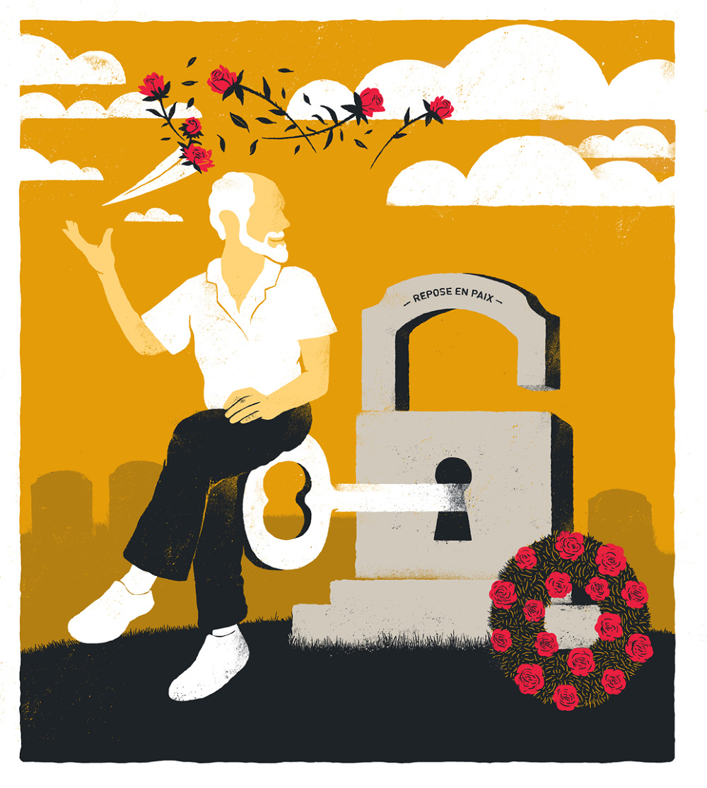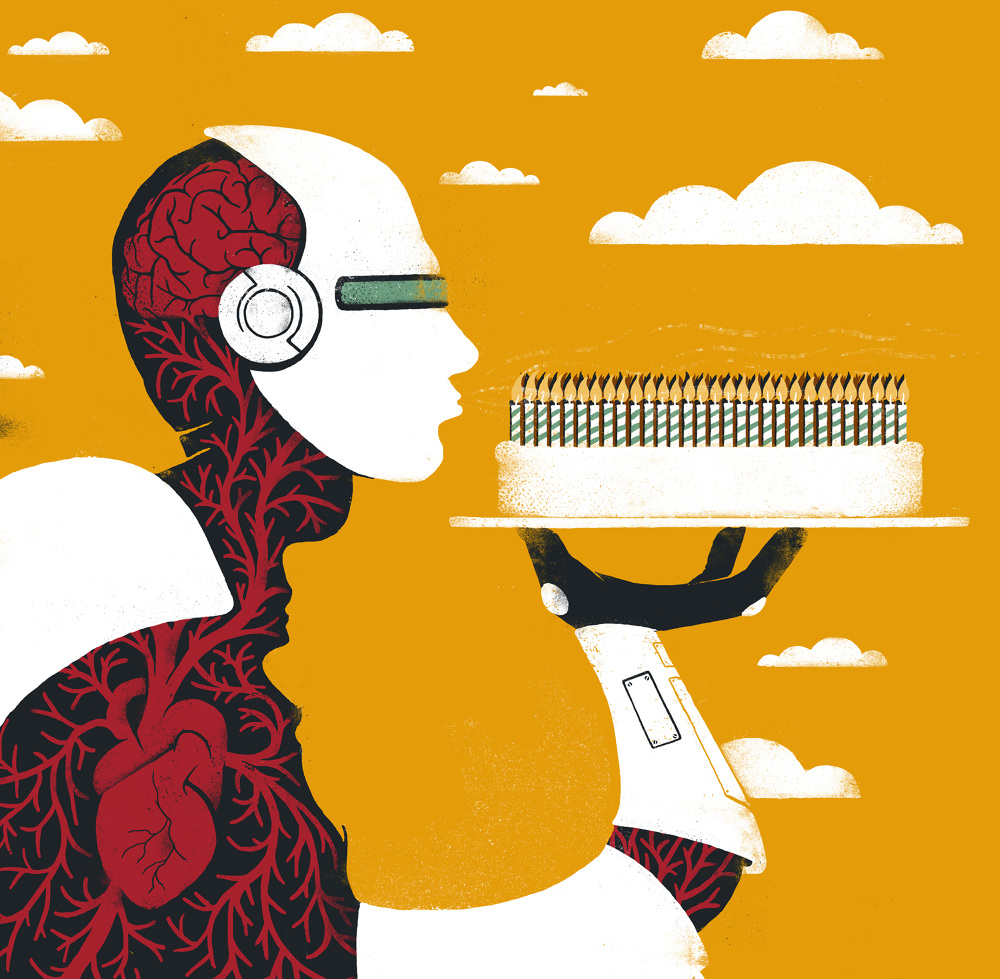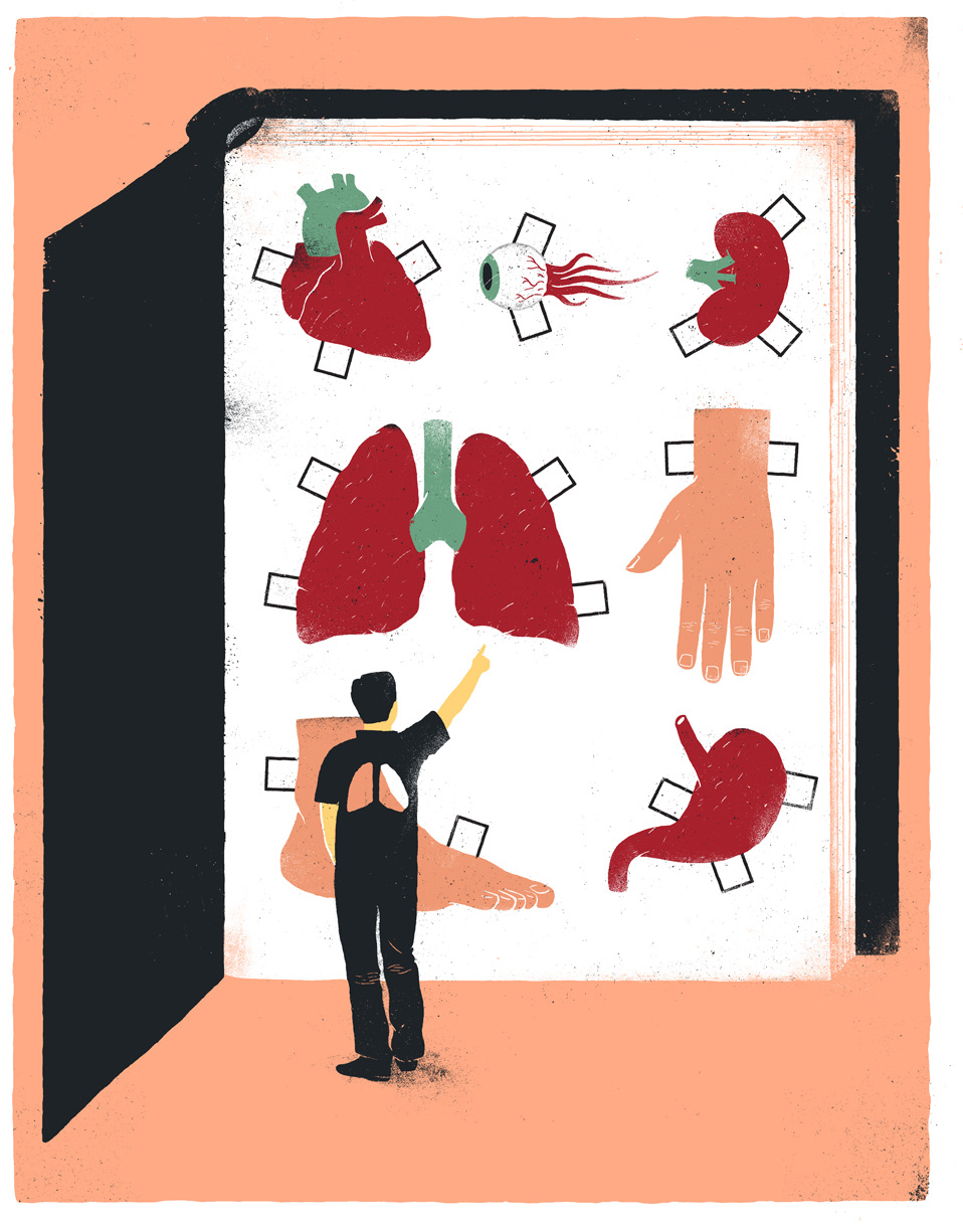 A series of illustrations on Google which invested in biotech projects to push the limits of the human body.