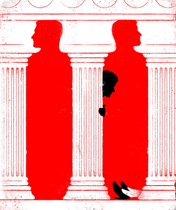 Illustration for New York Times Book Review about Identical, the Scott Turow's courtroom thriller.