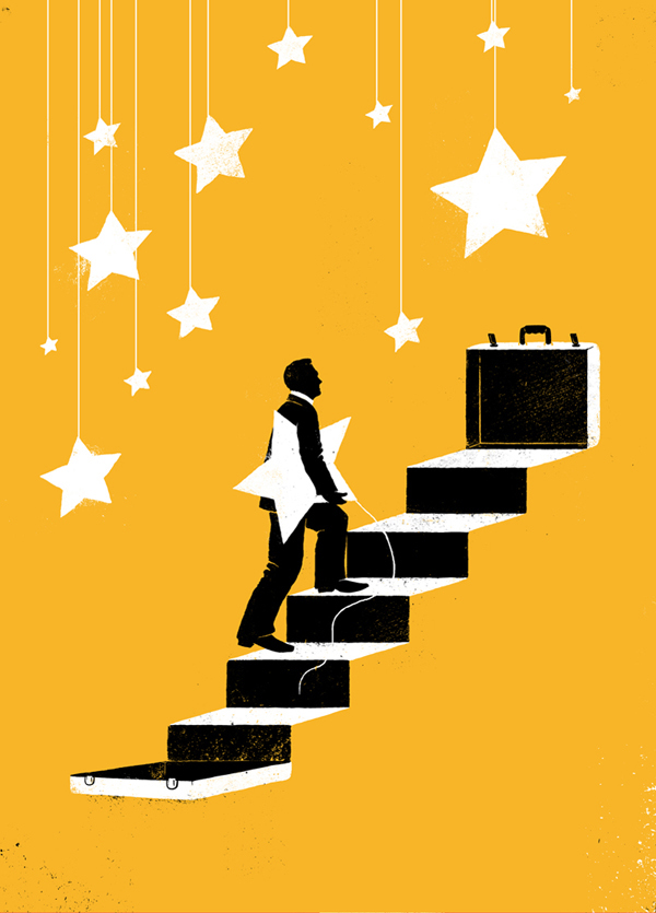 3 illustrations pour le magazine Premium sous le thème de l'innovation: «Bâtir sa stratégie», «Apprendre, créer et répéter» et «l'inventions hors frontières»./