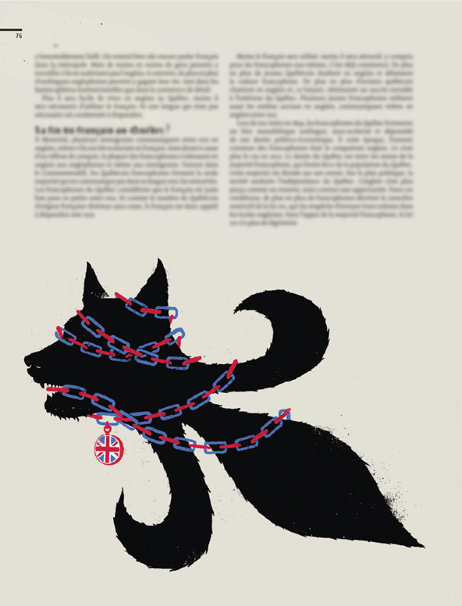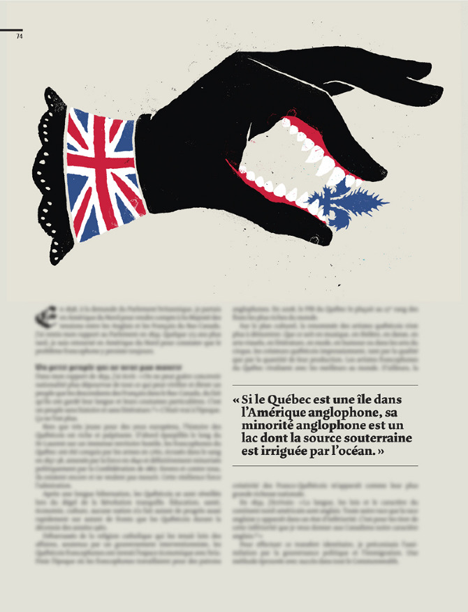 I illustrated an article for Urbania special Anglos. The author of the article was inspired by the Durham Report, in the 19th century, which recommended the fast assimilation of Quebec francophones by British colonies.